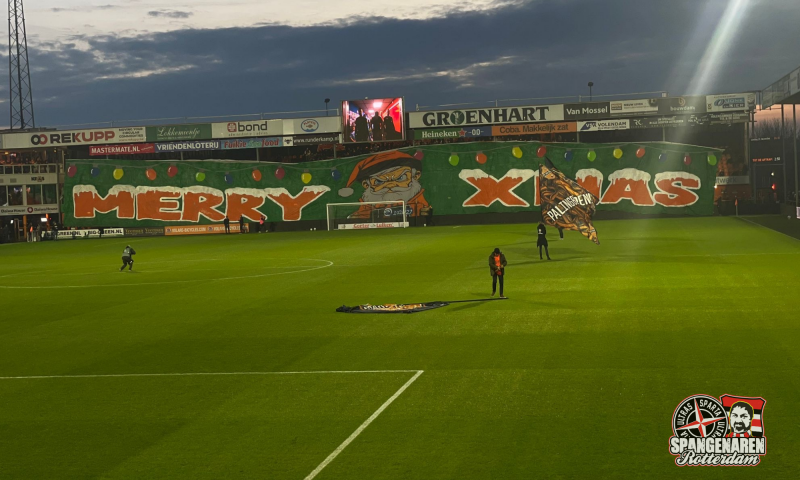 De laatste wedstrijd van het jaar werd door de supporters afgesloten met een mooie smokeactie. Aangezien het om kwart voor vijf al donker was, bracht dit een prachtig effect.