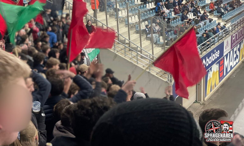 De sfeer tijdens de wedstrijd was bij ons als Spangenaren wel goed te merken. Onze jongens hadden er zin in en gaven alles wat er in het half wakkere lichaam zat. Toch merk je dat het bij deze wedstrijden lastig is om de rest van het hoekvak, en al helemaal het stadion, mee te krijgen.